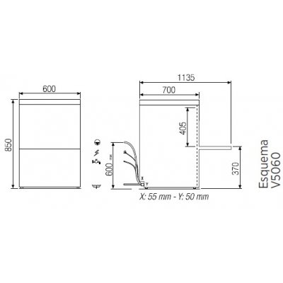 Accesorios incluidos: 1 cesta de acero inoxidable 50×60 cm (interior 47×57 cm).