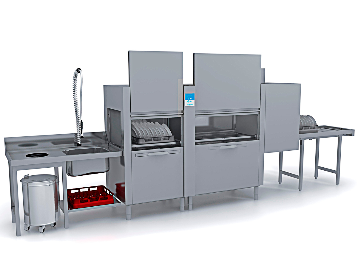 Lavavajillas de arrastre NIAGARA 411.2 de EUROFRED, con óptimo rendimiento y reducción del consumo de agua.