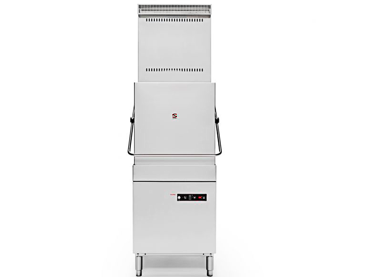 Lavavajillas de cúpula x-tra X-100V de SAMMIC, electrónico con cuba de 2.5kW, calderín de 7.5kW, selector de ciclos, visor de temperaturas y condensador de vahos.