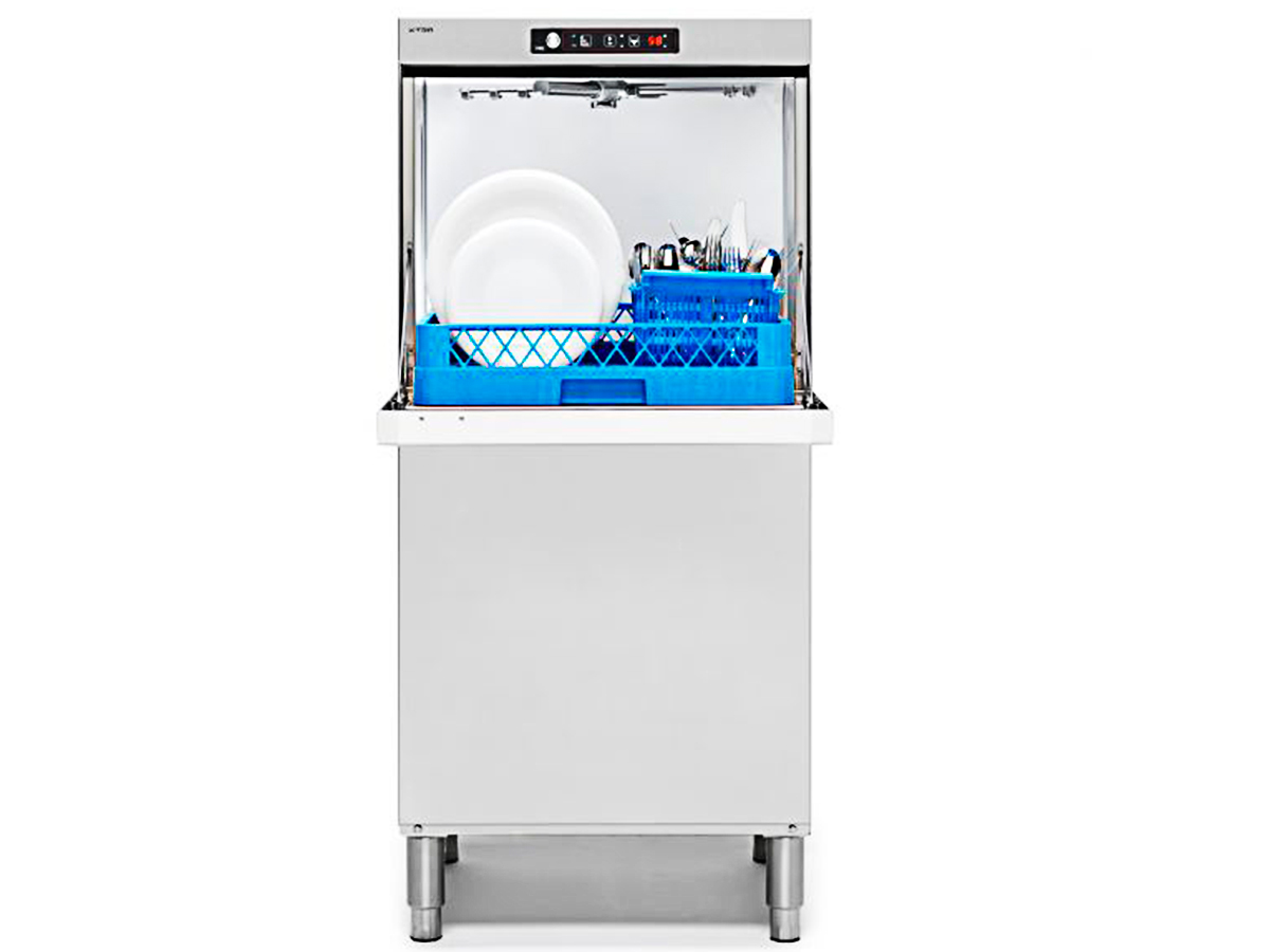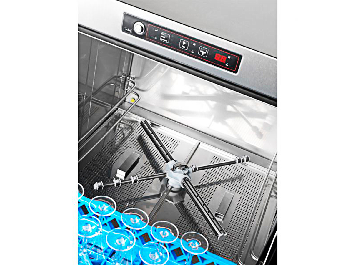 Lavavajillas industrial x-tra X-80 de SAMMIC, electromecánico, para hostelería de carga frontal estándar para bajo mostrador.