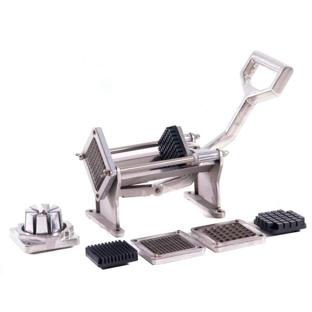 Puede cortar patatas fritas en tiras de 7×7, 9×9 o 13×13 mm de sección, y diferentes tipos de frutas y hortalizas en forma de gajos.