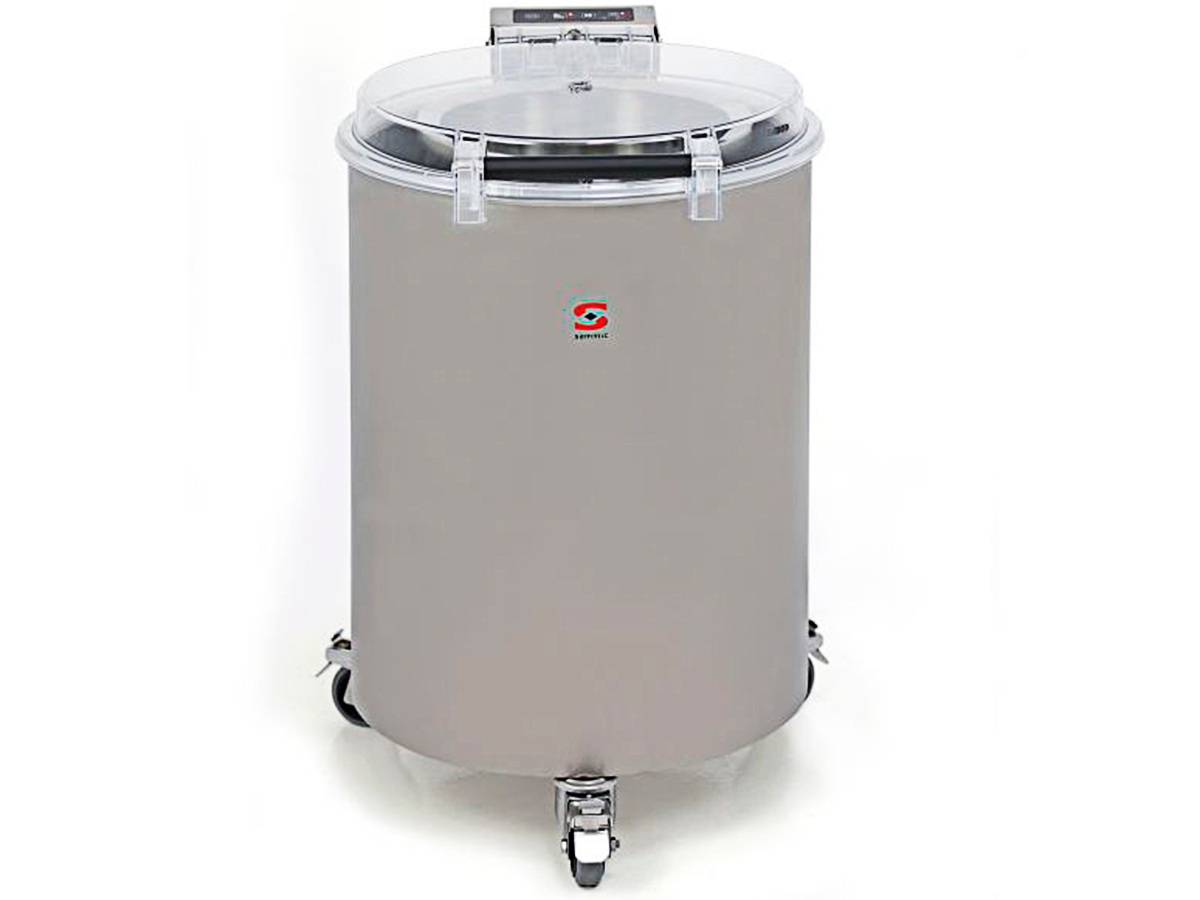 Incorpora motor trifásico alimentado por variador electrónico de gran fiabilidad. Gracias a ello las escurridoras se conectan a la red mediante toma monofásica.