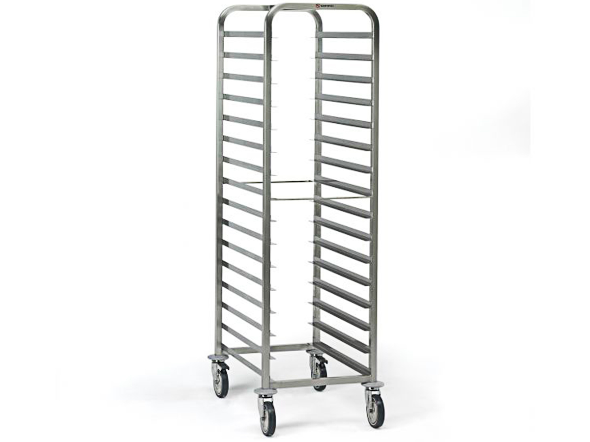 Carro con guías para bandejas de pastelería y panadería CG-1664 de SAMMIC, soldados con estructura en tubo de acero inoxidable AISI 304 cuadrado de 25x25x1,2.