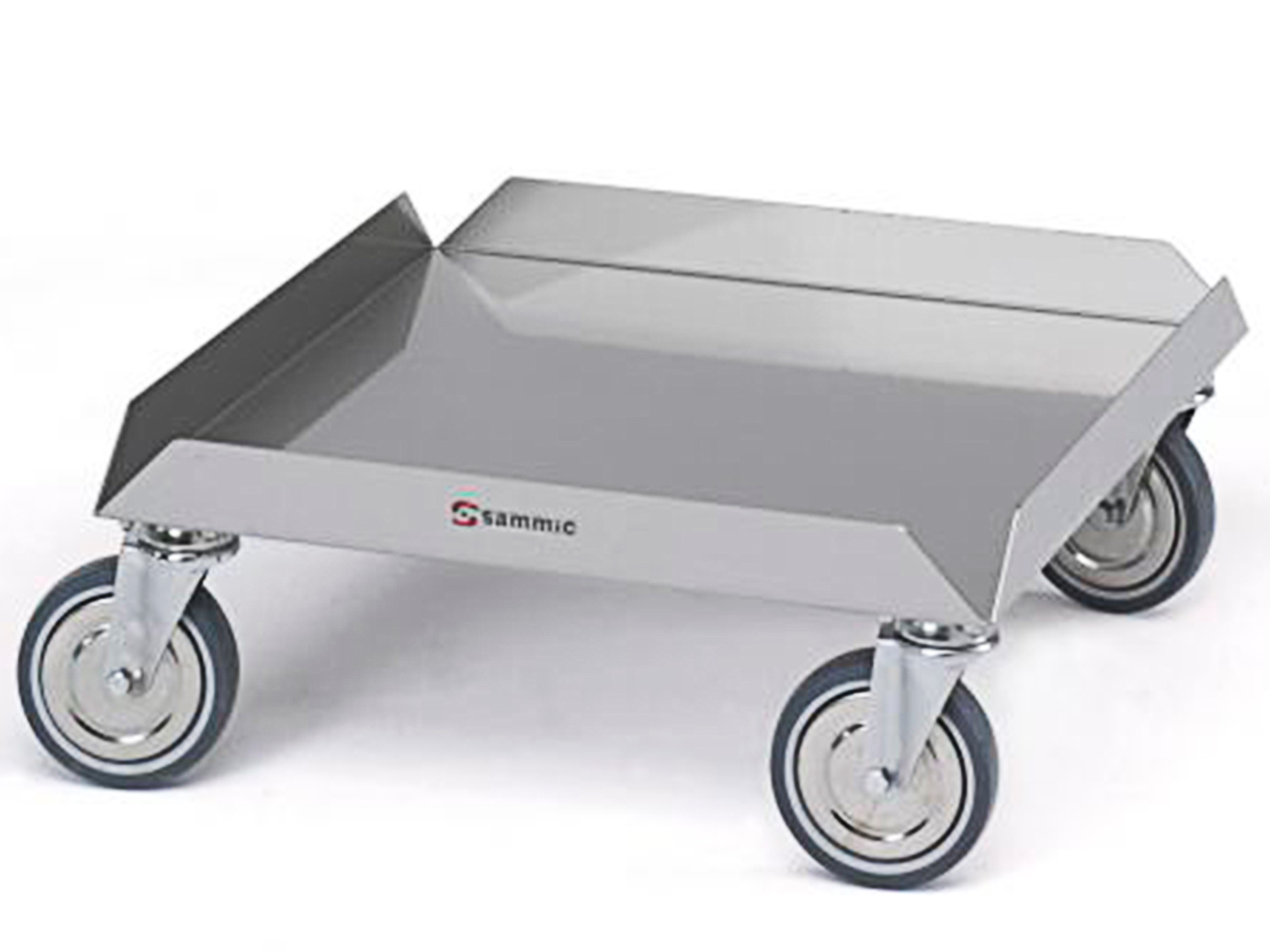 Carro bajo para cestas CCV de SAMMIC, en acero inoxidable AISI304, con plano y ruedas de Ø125mm, dos de ellas con freno.