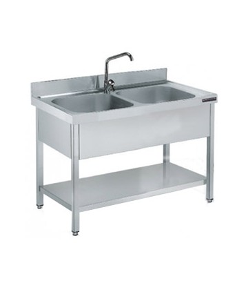 Fregadero industrial Gama 700 con 2 cuba de la Marca Soberana con peto de 100 mm de altura.