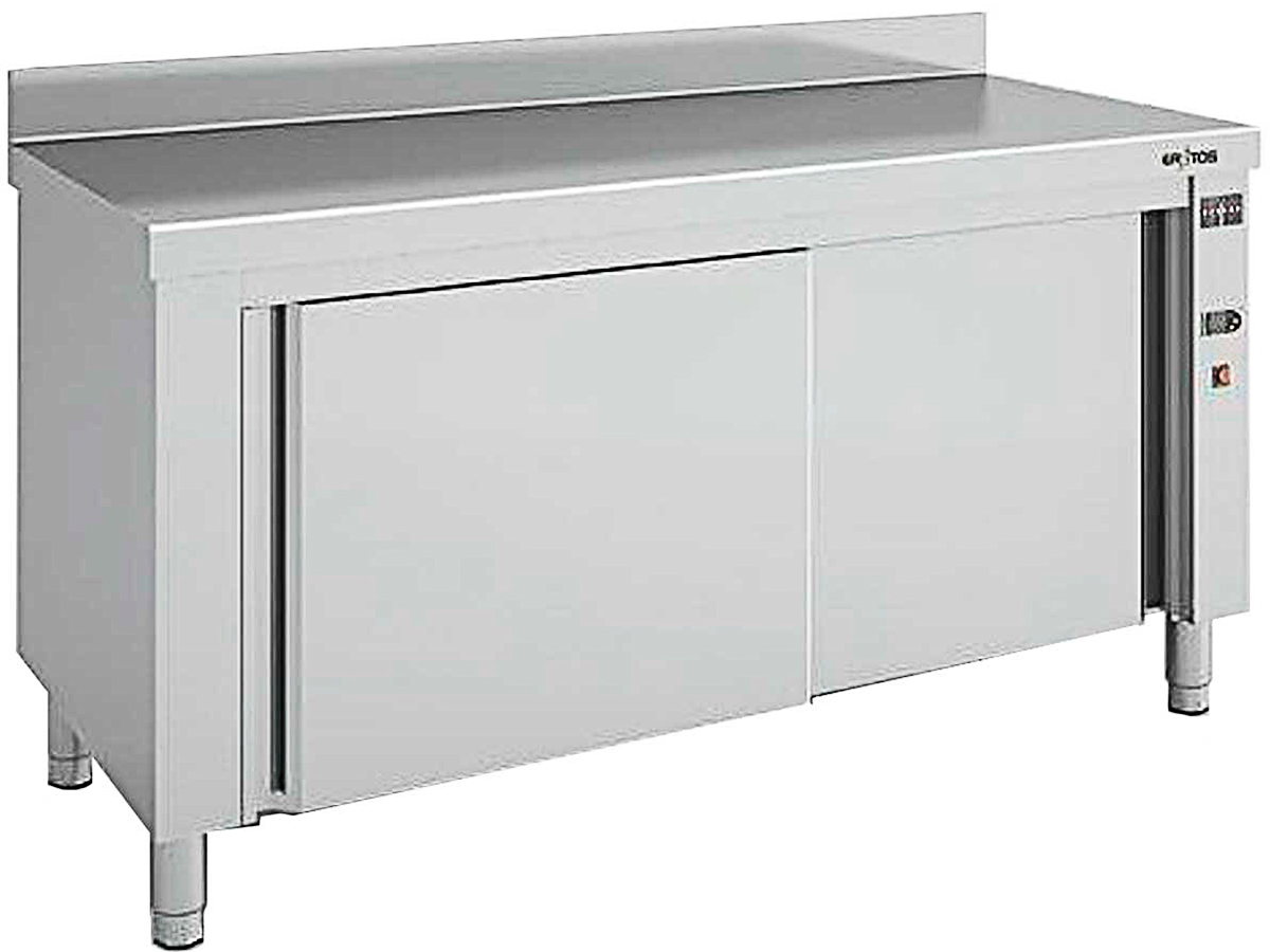 Mesa caliente con encimera mural gama 600 MCA60-M de ERATOS, fabricada integramente en acero inoxidable AISI 304 18/10 con acabado satinado.