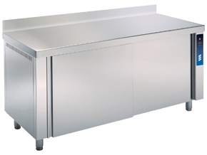 Mueble caliente mural con puertas correderas gama 700 MMP-7-CA de EDENOX, construido en acero inoxidable con acabado satinado y doble pared aislada.