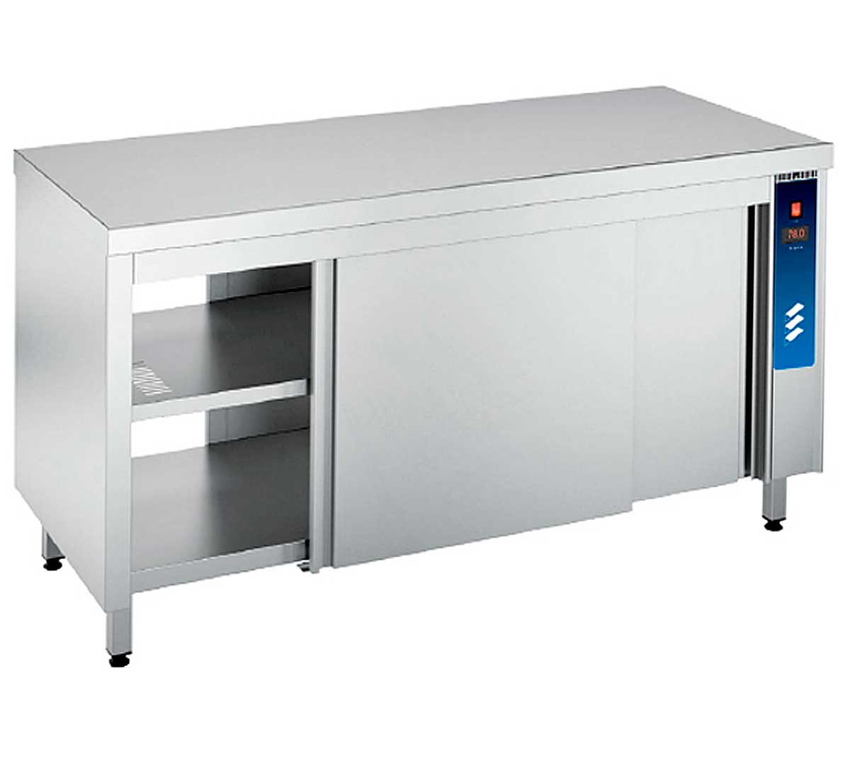 Mueble caliente pasante con puertas correderas gama 700 MCPP-7-CA de EDENOX, construido en acero inoxidable con acabado satinado y doble pared aislada.