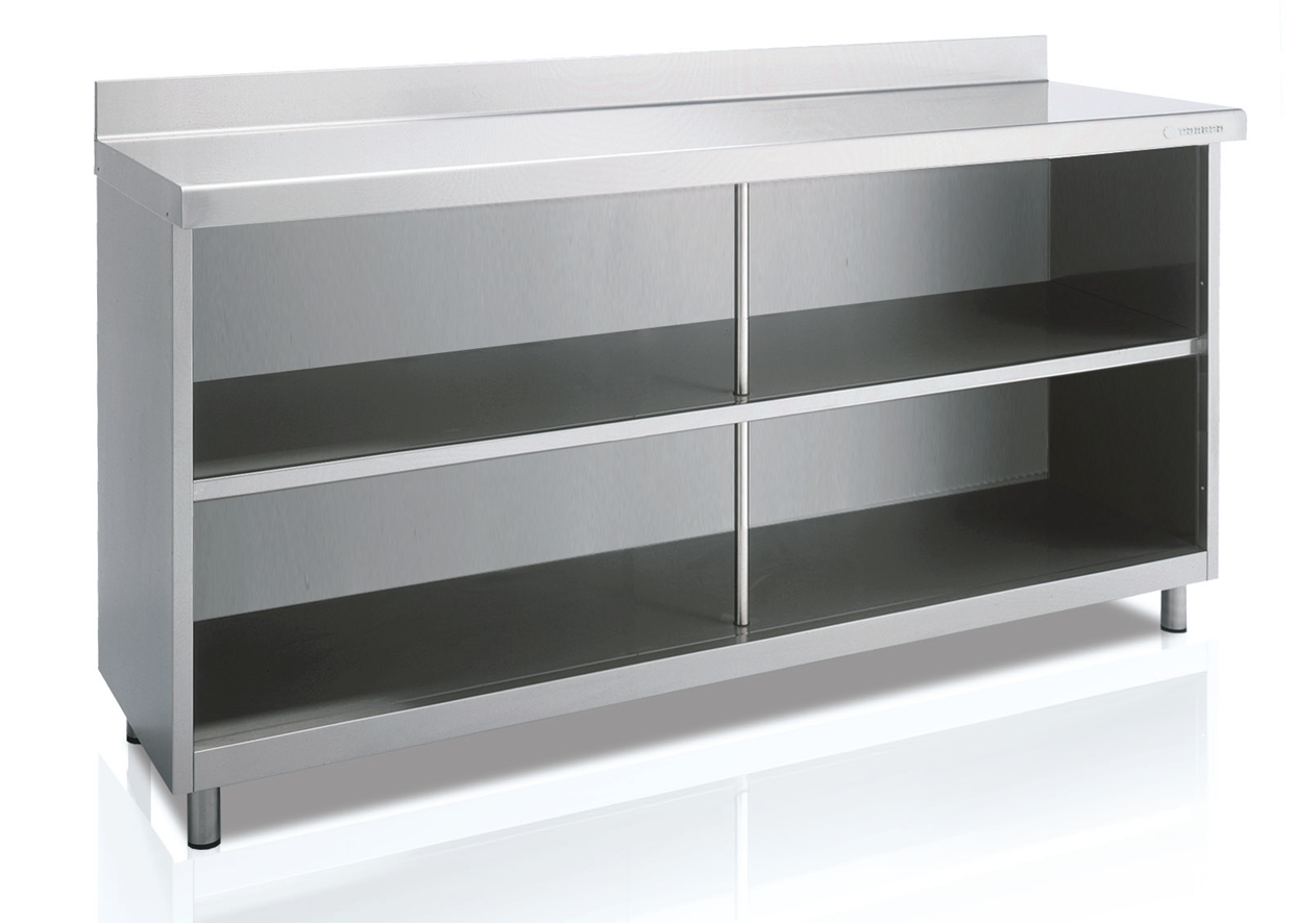 – Encimera de acero inox AISI-304 18/10 con frente curvo y peto trasero sanitario de 100 mm (Opcional sin peto).