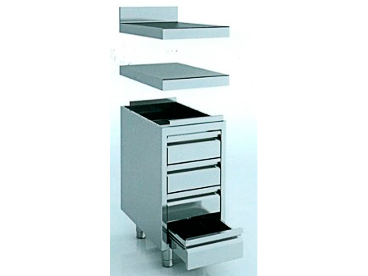 Mueble neutro cajonera 4 cajones gama 600 MNC4-60 de ERATOS, fabricado en acero inoxidable AISI-304 18/10 con acabado satinado.