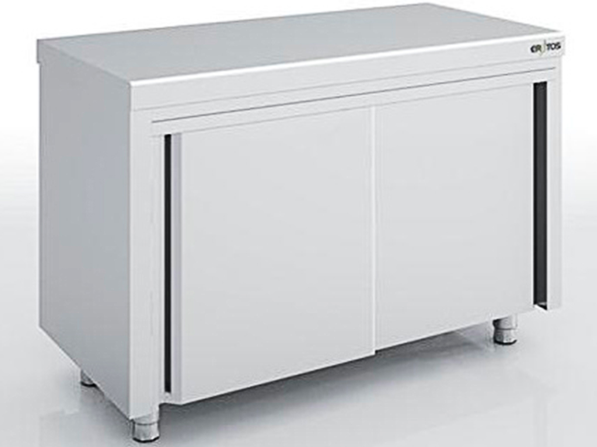 Mueble neutro con puertas correderas gama 600 MNC60-C de ERATOS, fabricado en acero inoxidable AISI-304 18/10 con acabado satinado.