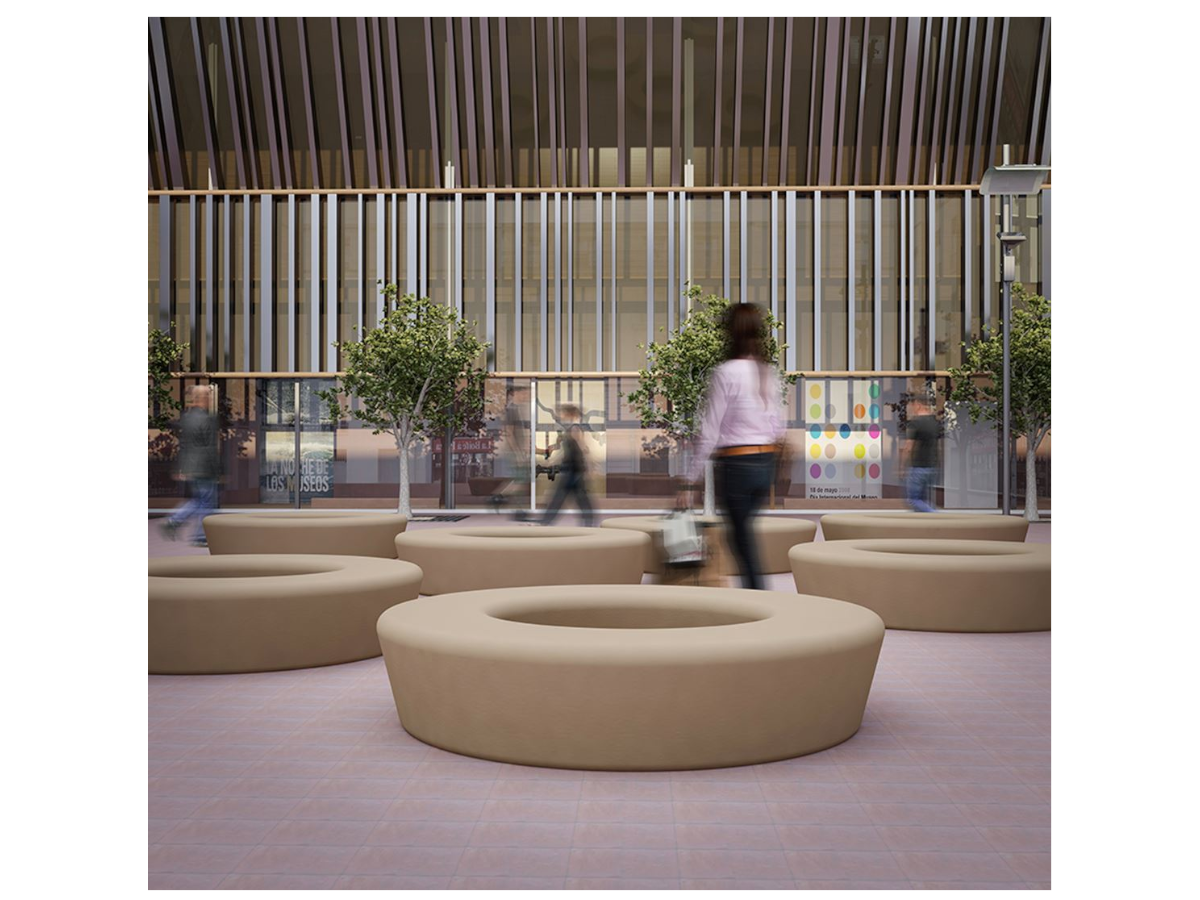 Banco HOOP RING VILAGRASA de RESOL, circular de polietileno rotomoldeado para uso interior y exterior.