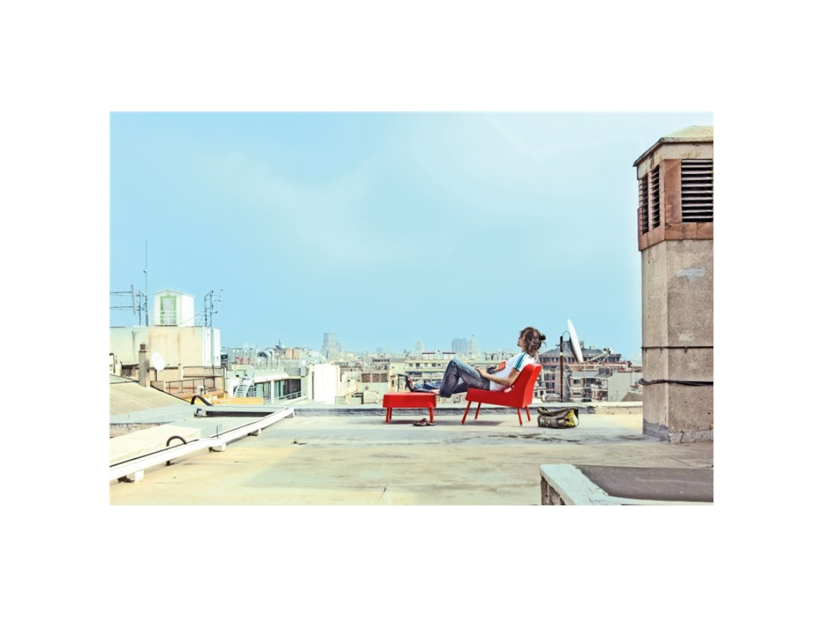 Mesa BOB VILAGRASA de RESOL, auxiliar de polietileno rotomoldeado para uso interior y exterior. Patas de aluminio. Protección UV.