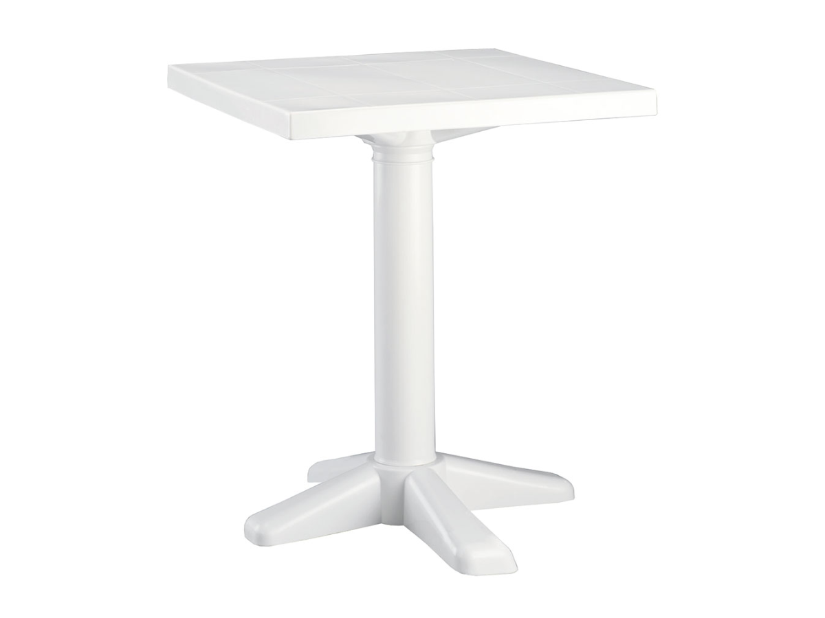Mesa ESCULAPI CONTRACT de RESOL, para uso exterior inyectada en polipropileno con pie central embutido con gran estabilidad.