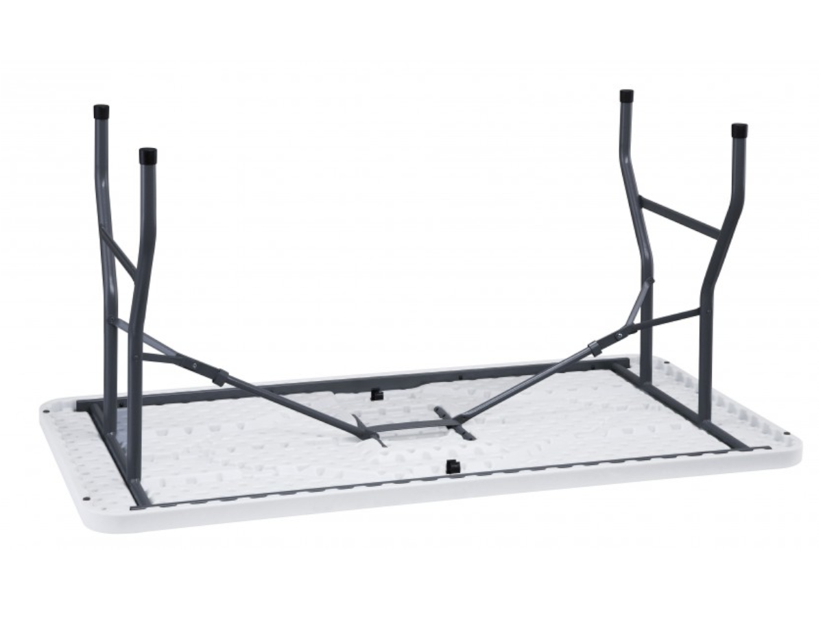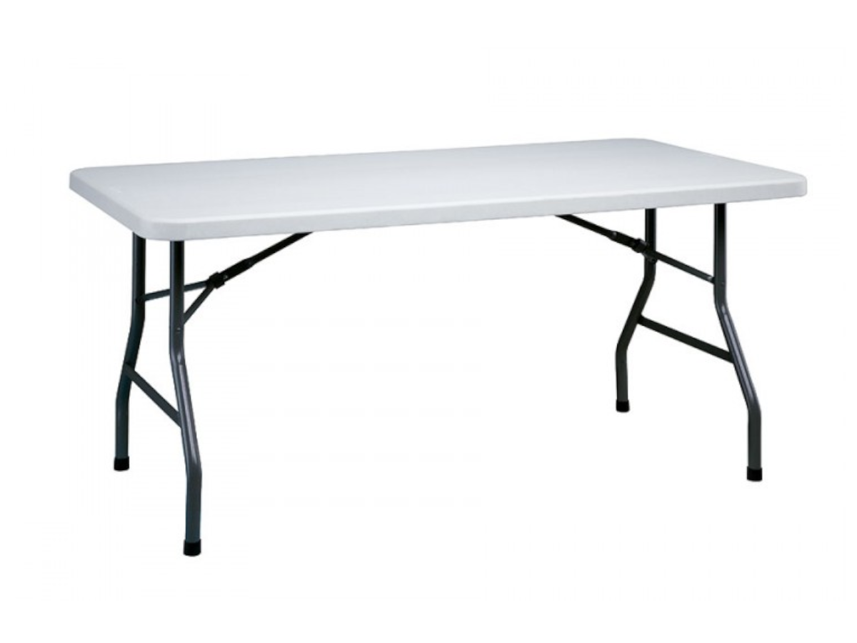 Mesa MAHLER CONTRACT de RESOL, plegable con estructura de acero pintado y sobre de polietileno de alta densidad, en color gris claro.