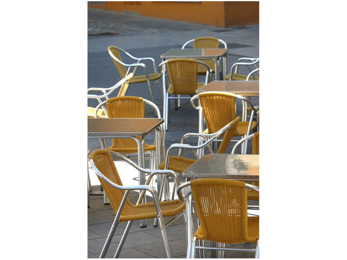 Mesa RAYA CONTRACT de RESOL, apilable cuadrada (60 x 60 / 70 x 70 / 80 x 80 cm) para exterior.