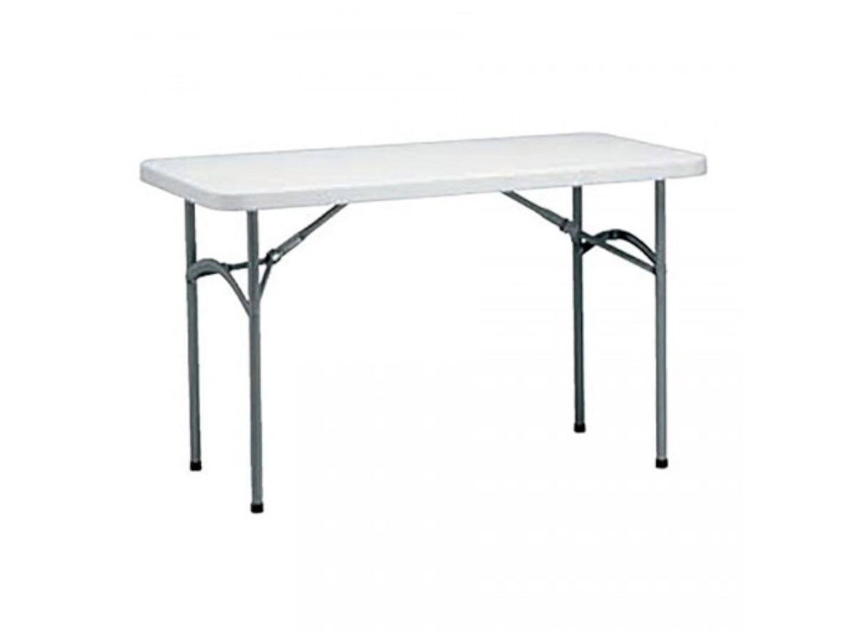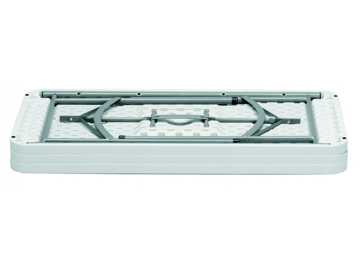 Mesa STRAUSS CONTRACT de RESOL, plegable con estructura de acero pintado y sobre de polietileno de alta densidad, en color gris claro.