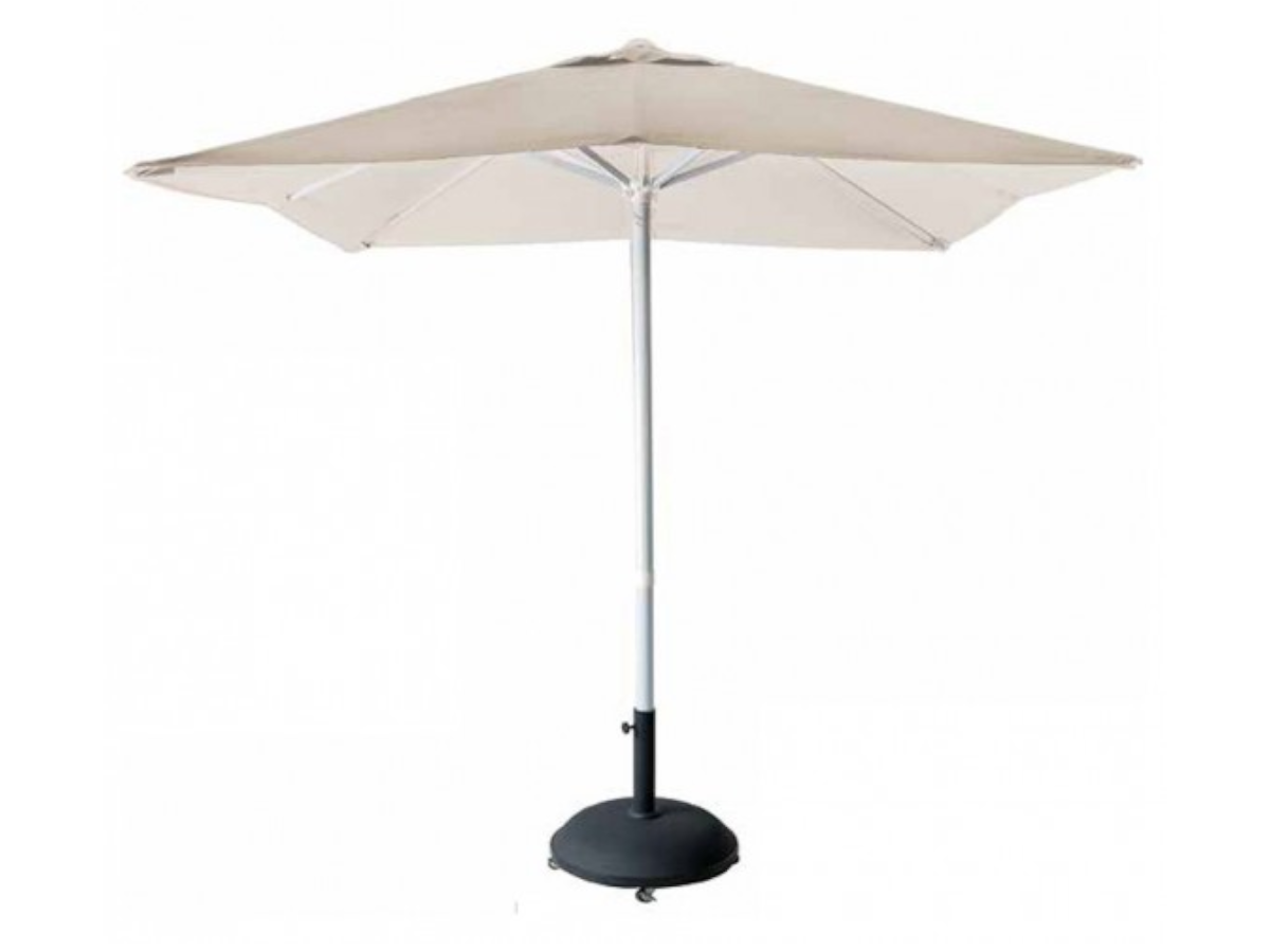 Parasol A3 CONTRACT de RESOL, cuadrado 2 x 2 m, de doble polea. Mástil de aluminio de una sola pieza lacado blanco de Ø 48 mm.