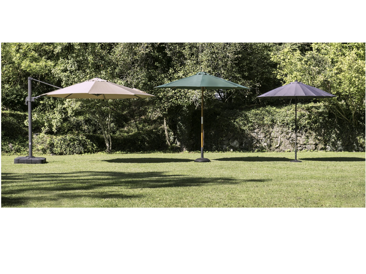 Parasol LA2 CONTRACT de RESOL, de pie lateral de diámetro 3,5 m, 8 varillas de aluminio de 17×25 mm.