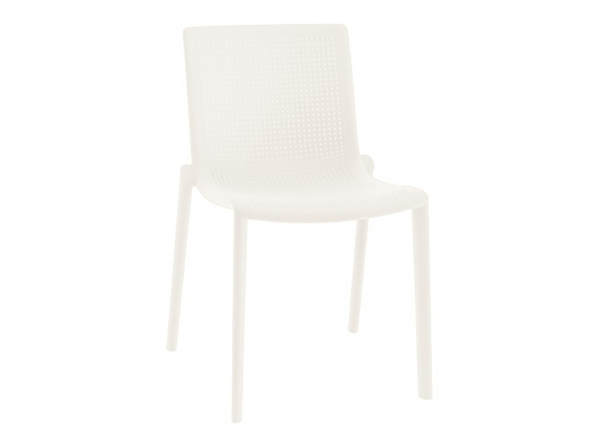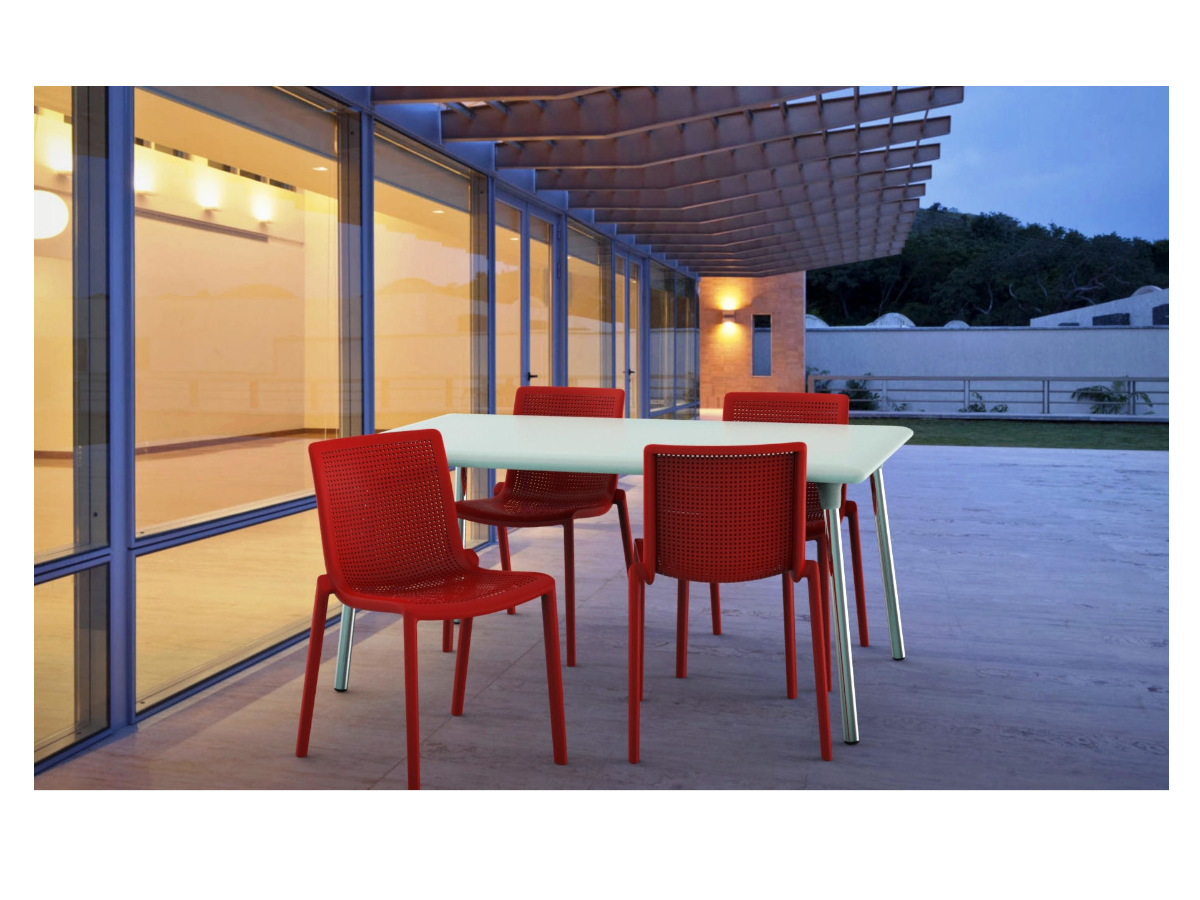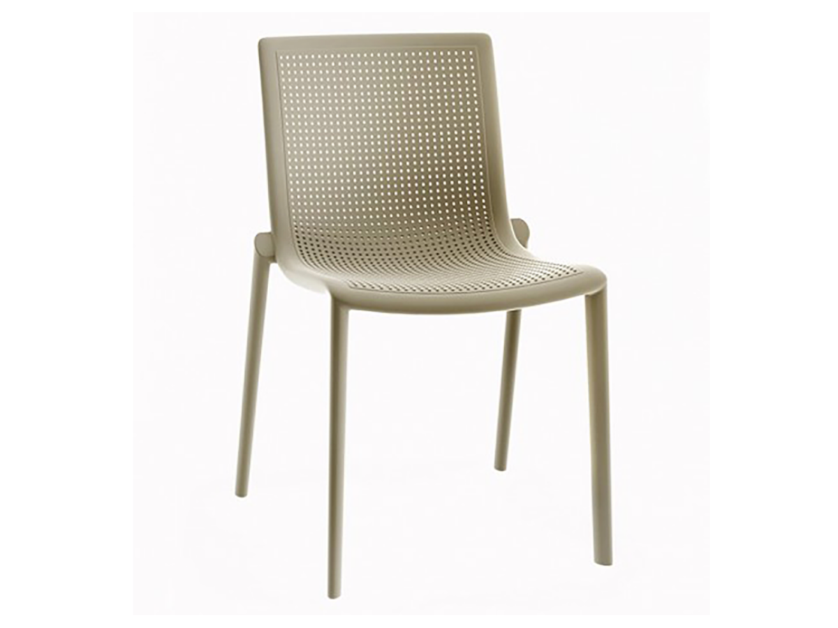 La silla Beekat constituye una proyección en el diseño del modelo Kat-Netkat basándose en el perforado continuo y jugando con la geometría, en este caso cuadriculando los espacios y manteniendo la imagen de transparencia.