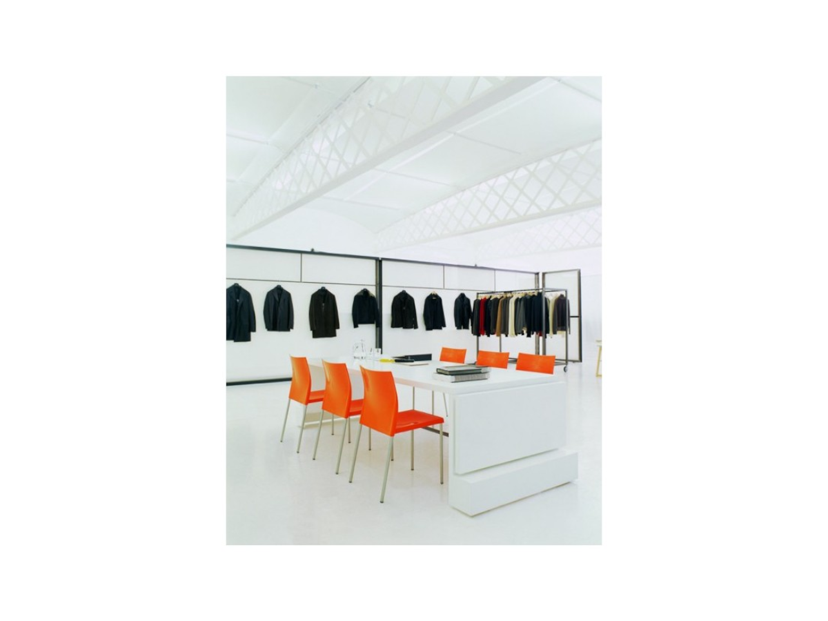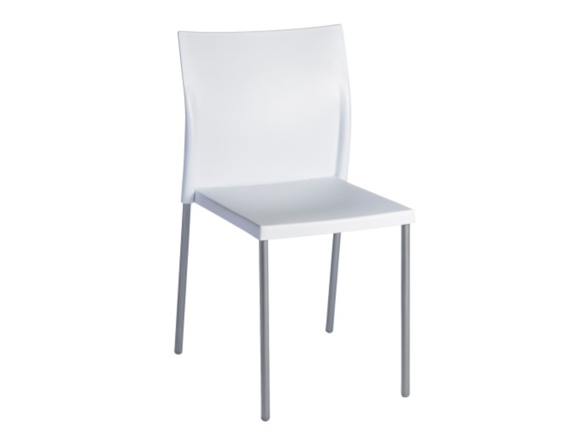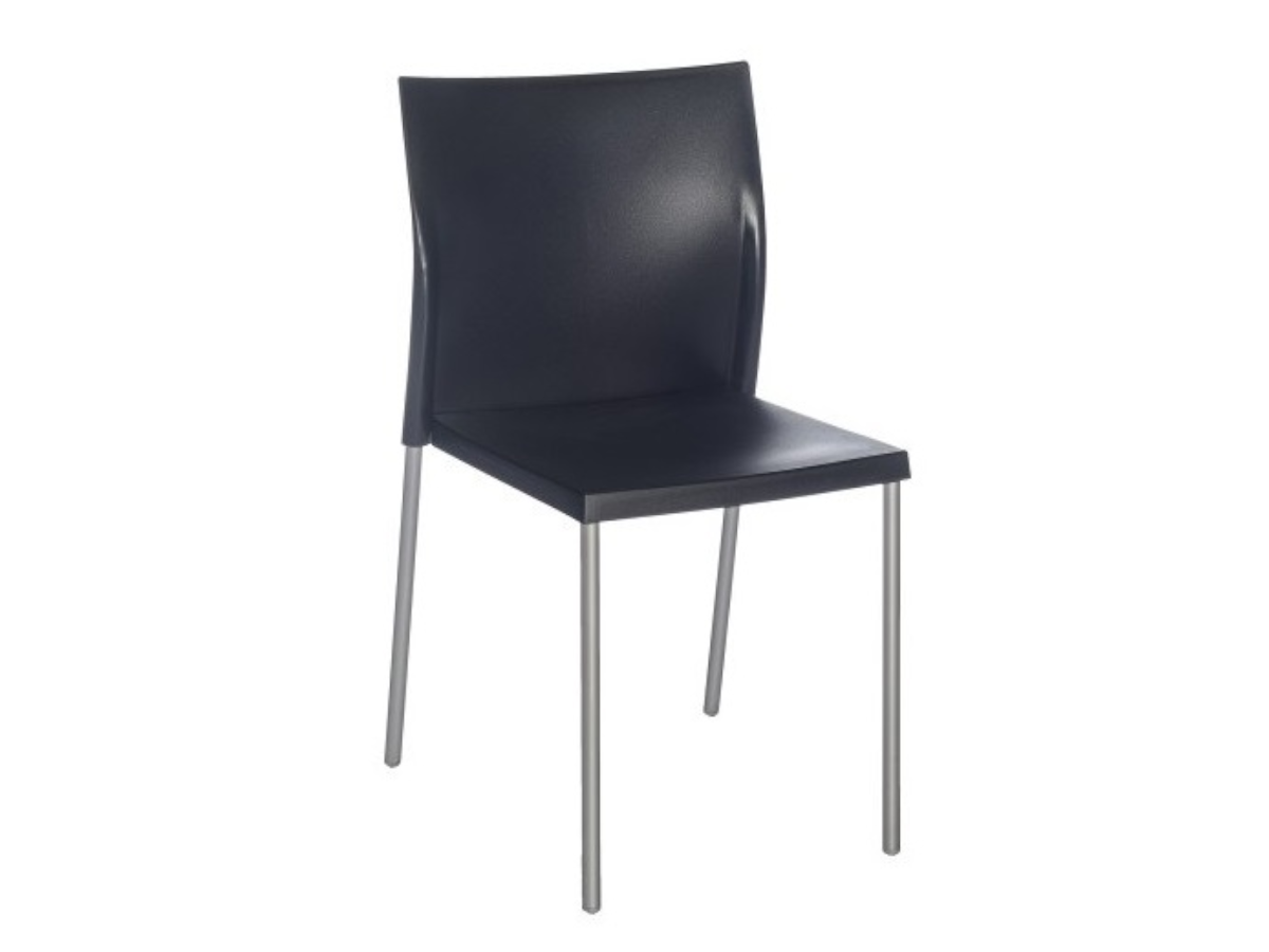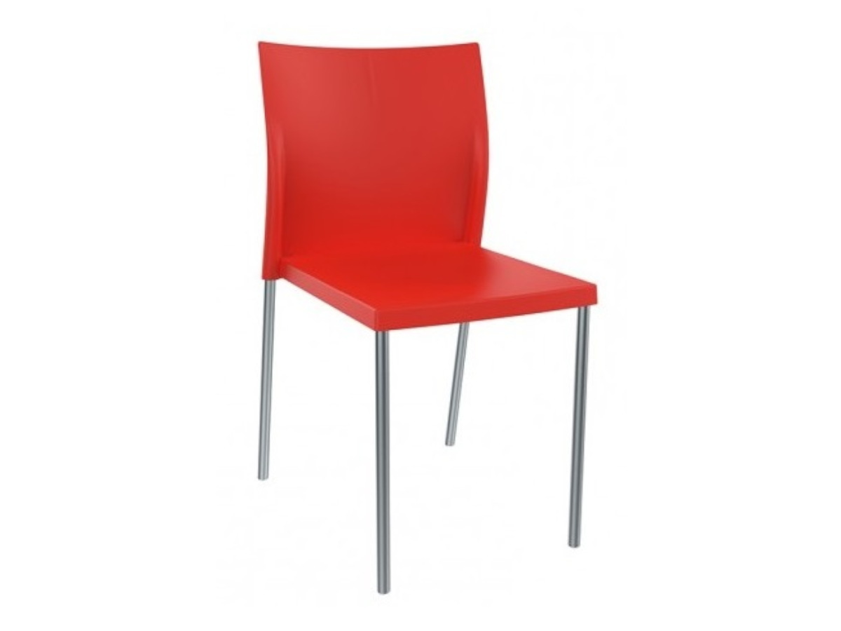 La intención de este diseño fue crear una silla sin brazos, de reducidas dimensiones, de líneas arquitectónicas, utilizando los mínimos recursos formales pero sin perder la capacidad de seducir. La estructura de acero soporta el asiento y el respaldo de polipropileno creando un objeto neutro y no invasivo. Apilable, multicolor, discreta y resistente.