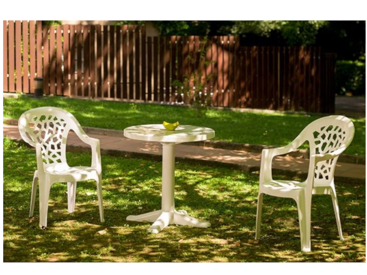 Silla con brazos INCA CONTRACT de RESOL, para uso exterior. Apilable y con protección UV.