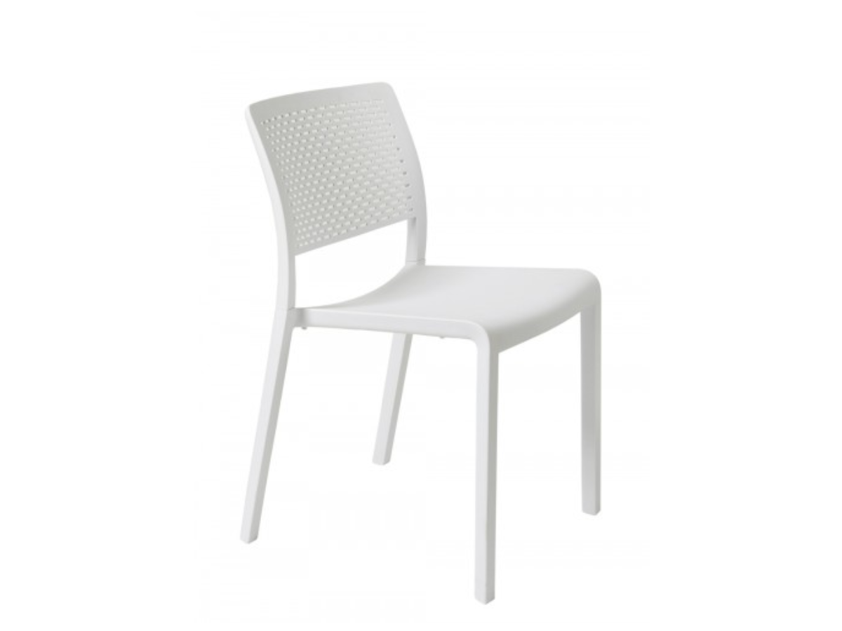 El respaldo de una silla es la parte que más se percibe en un espacio. Trama está dotada de una transparencia óptica que le quita peso tanto física como visualmente creando un ambiente singular en un espacio con gran número de sillas. Al mismo tiempo estas perforaciones en el respaldo lo hacen transpirable.