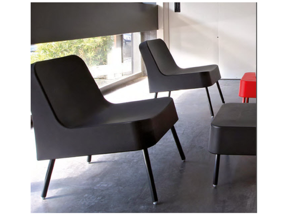 Sillón BOB VILAGRASA de RESOL, de polietileno rotomoldeado para uso interior y exterior. Patas de aluminio. Protección UV.