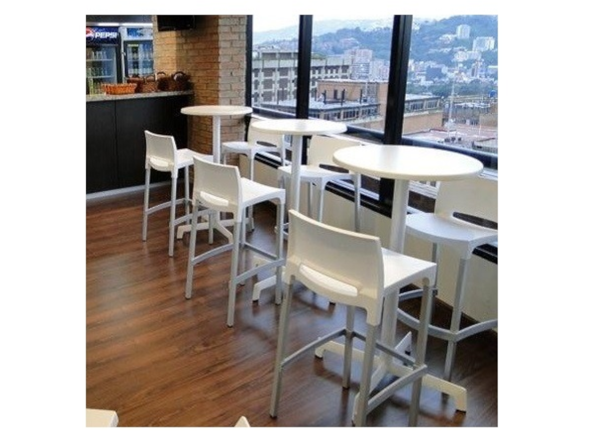 Taburete RICK CONTRACT de RESOL, apilable para uso interior y exterior.