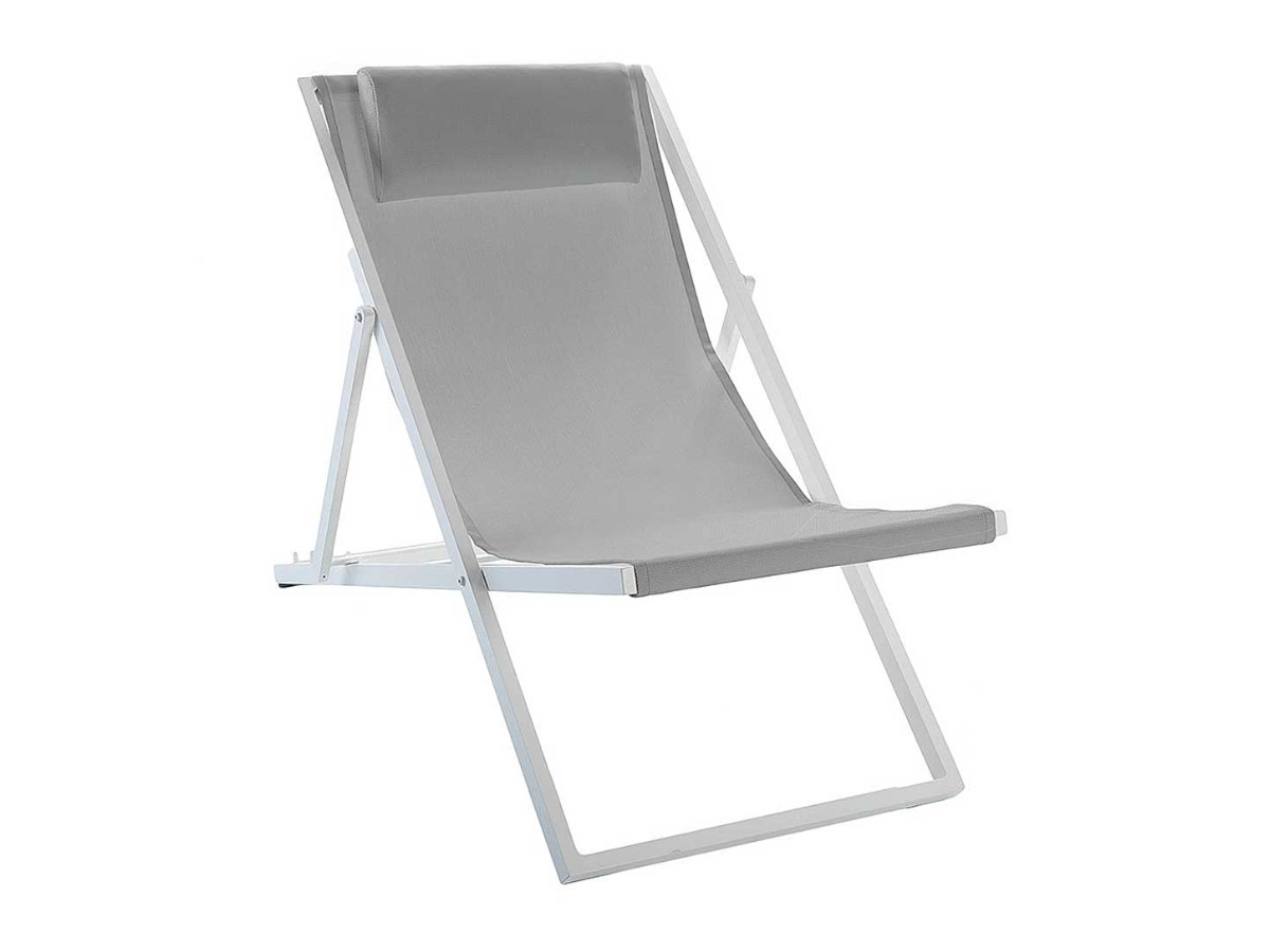 Tumbona plegable SAND CONTRACT de RESOL, de aluminio pintado por pulverización en blanco con textilene blanco o gris.