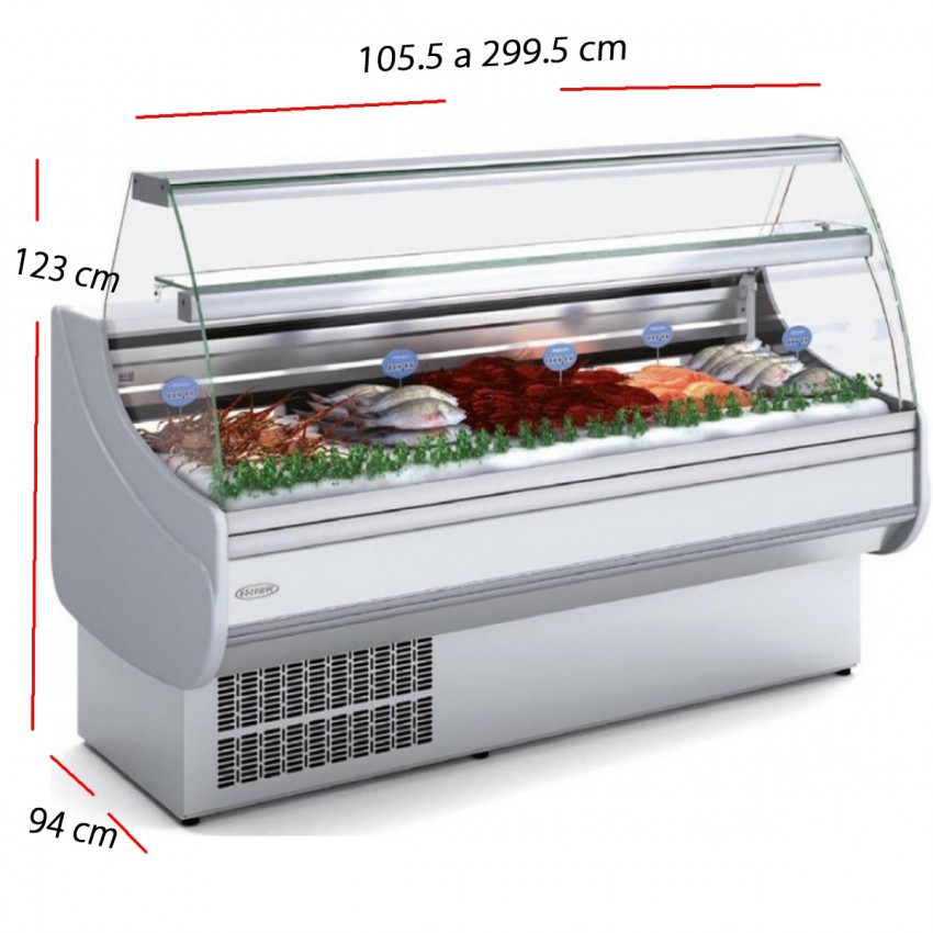 Vitrina Expositora Refrigerada Pescado VE-9-13-R-P de ColdQueen con para-golpes en la parte delantera.