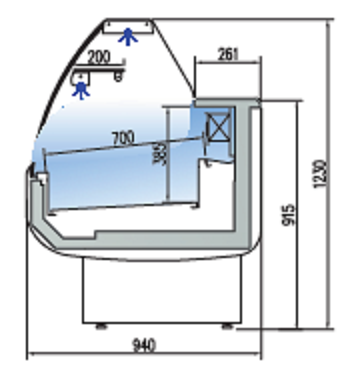 – Decoración estándar: costados cortos gris oscuro frontal + franja decorativa azul. Perfilería en aluminio anodizado