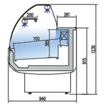 – Decoración estándar: costados cortos gris oscuro frontal + franja decorativa azul. Perfilería en aluminio anodizado