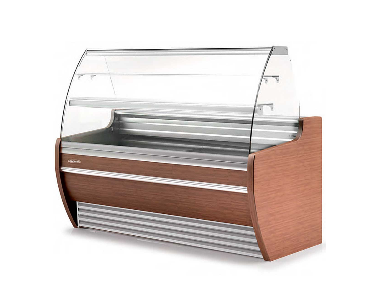 Vitrina Expositora Pastelera VP-9B-25-C de ColdQueen con para-golpes en la parte delantera.