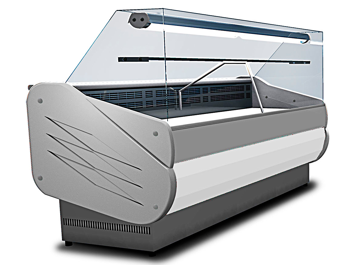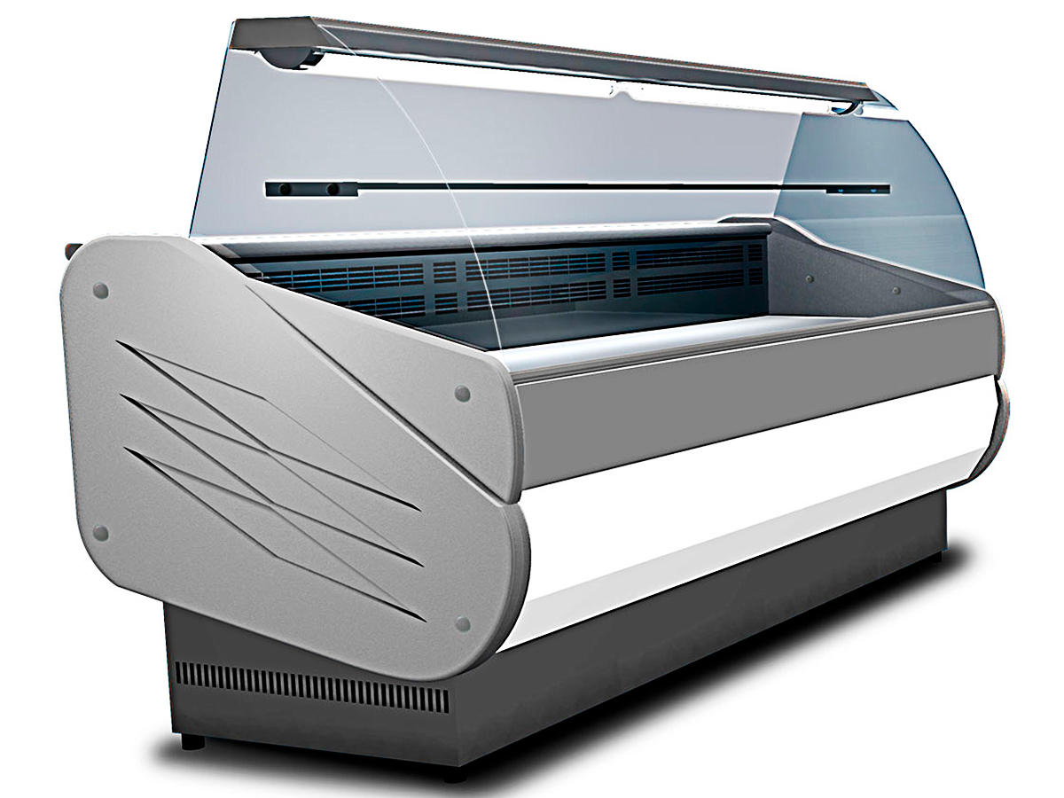 Vitrina refrigerada SALINA 80 200 de EUROFRED, semi-ventilada de vidrio curvo para la exposición y conservación de todo tipo de producto fresco.
