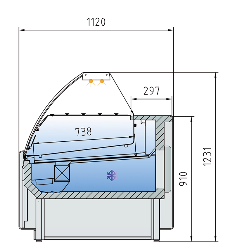 Vitrina Expositora Modular con Reserva VE-10-15-RC-C-TF de DOCRILUC con control electrónico de temperatura.