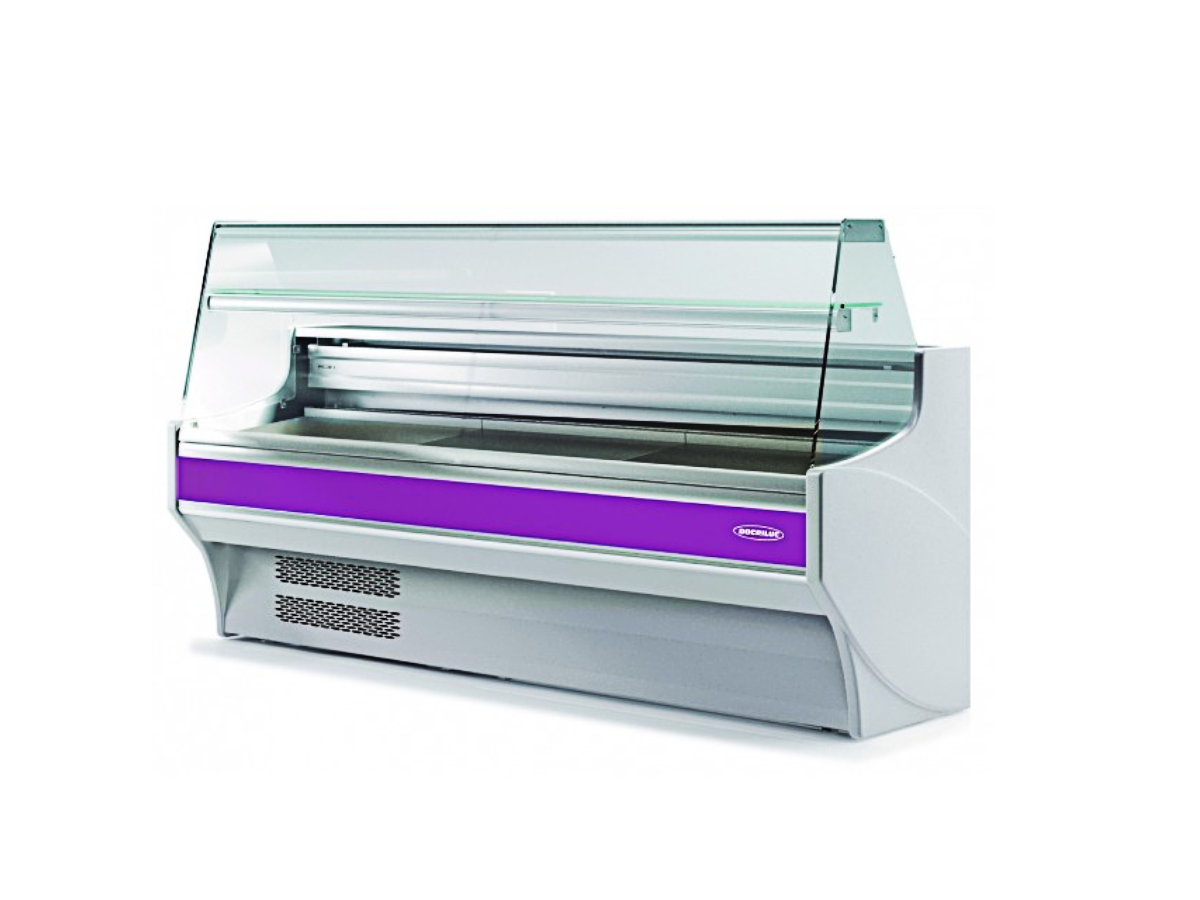 Vitrina Expositora Refrigerada VE-8-15-R de ColdQueen con para-golpes en la parte delantera.