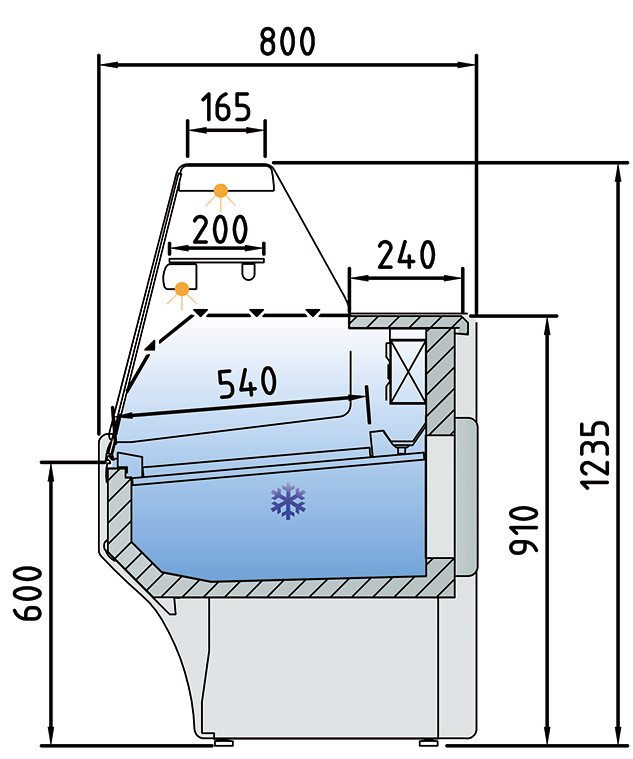 Iluminación estándar LED: encimera superior y estante