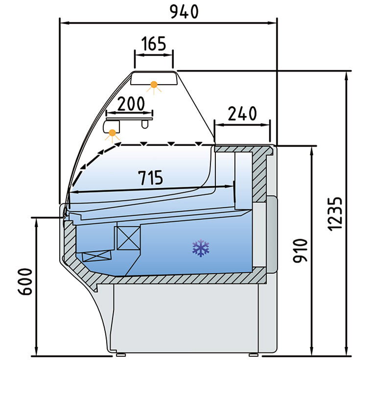 Iluminación estándar LED: encimera superior y estante
