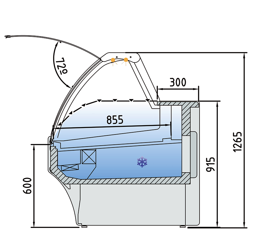 VITRINA DE SUSHI 1,5 M VRGI SUSHI 6 CRISTAL LINE