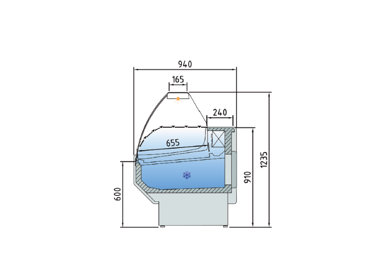 Vitrina Expositora SPEDD VED-9-30-C de DOCRILUC con iluminación estándar LED: encimera superior.
