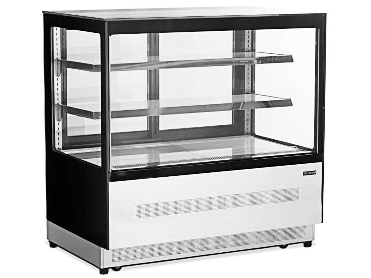 Vitrina refrigerada expositora cristal recto con frío ventilado LPD1200F-P BLACK de CLIMA HOSTELERÍA, perfecta para almacenar y exhibir productos alimentarios en pastelerías, cafeterías, tiendas delicatessen, supermercados y tiendas de especialidades.