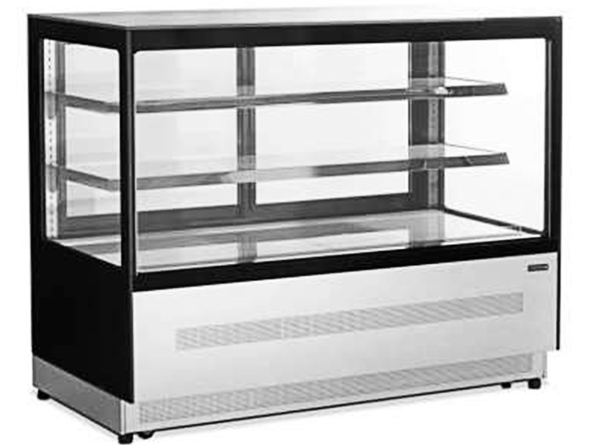 Vitrina refrigerada expositora cristal recto con frío ventilado LPD1500F-P BLACK de CLIMA HOSTELERÍA, perfecta para almacenar y exhibir productos alimentarios en pastelerías, cafeterías, tiendas delicatessen, supermercados y tiendas de especialidades.
