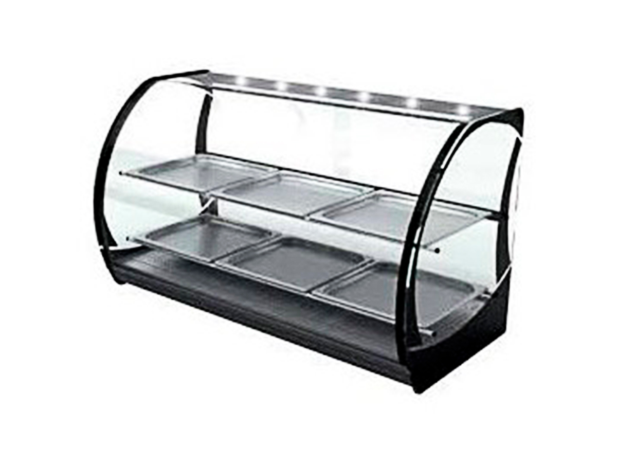 Expositor caliente eléctrico EX-ST1 de MCM, con 2 estntes, bandejas gatronorm 2/3 y luces led de bajo consumo.