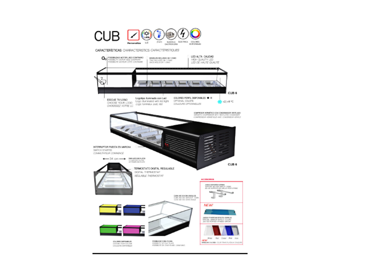 Vitrina Refrigerada CUB 4 CUBA PLANA de I90 con termostato digital regulable. Led alta calidad.