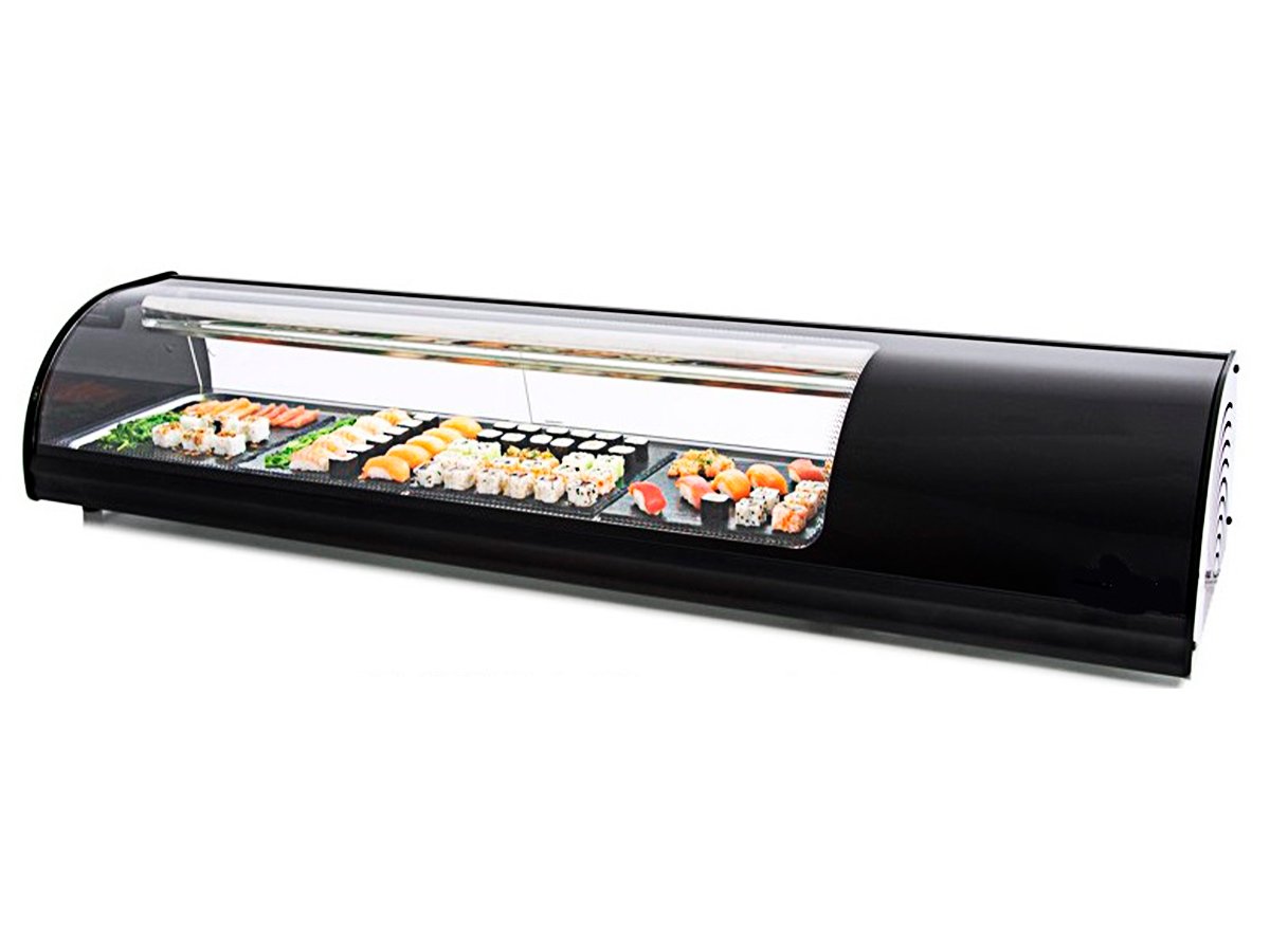 Vitrina refrigerada de tapas sushi placa lisa 6VTL SUSHI-NE de CLIMA HOSTELERÍA, estática, creada especialmente para sushi, pescado o similares.