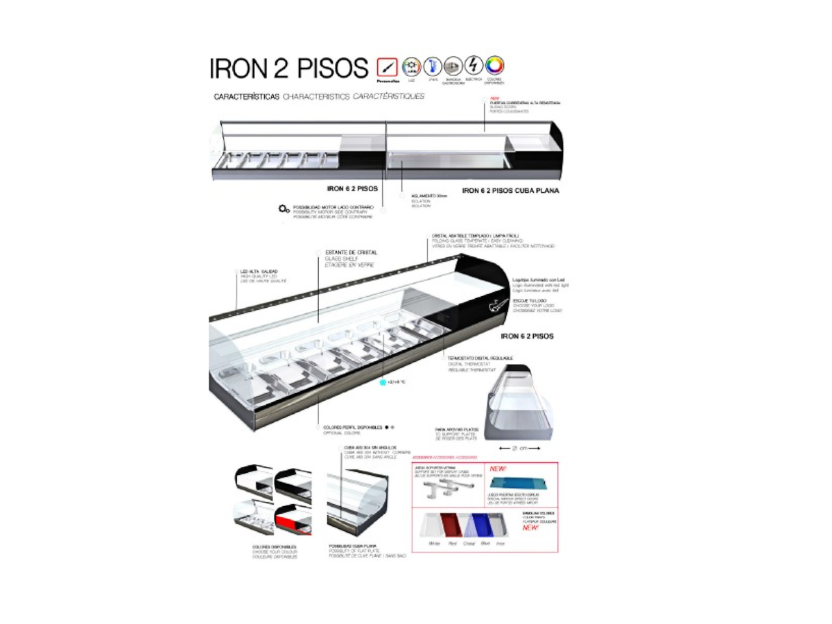 Vitrina Refrigerada IRON 4 2 PISOS CUBA PLANA de I90 con termostato digital regulable. Led alta calidad.