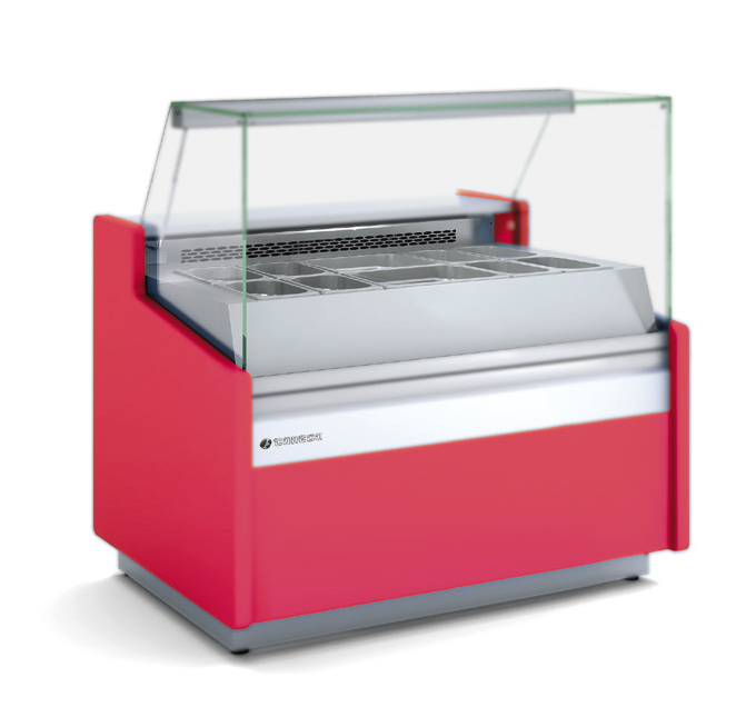 – Plano de exposición, con alojamientos para cubetas GN, fondo máximo 150 mm (cubetas no incluidas)