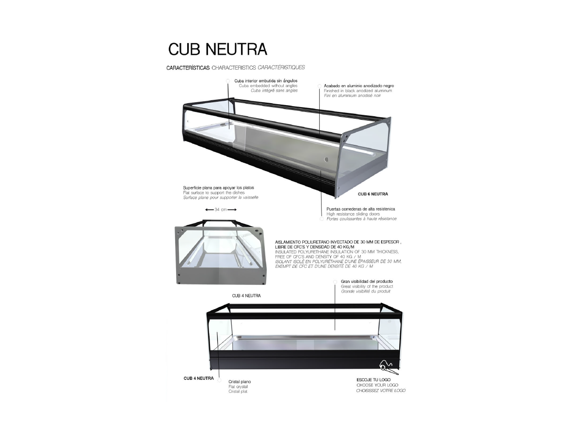 Vitrina CUB 6 NEUTRA CON CRISTAL PLANO de I90 con puertas correderas de alta resistencia. Acabado en aluminio anodizado negro.
