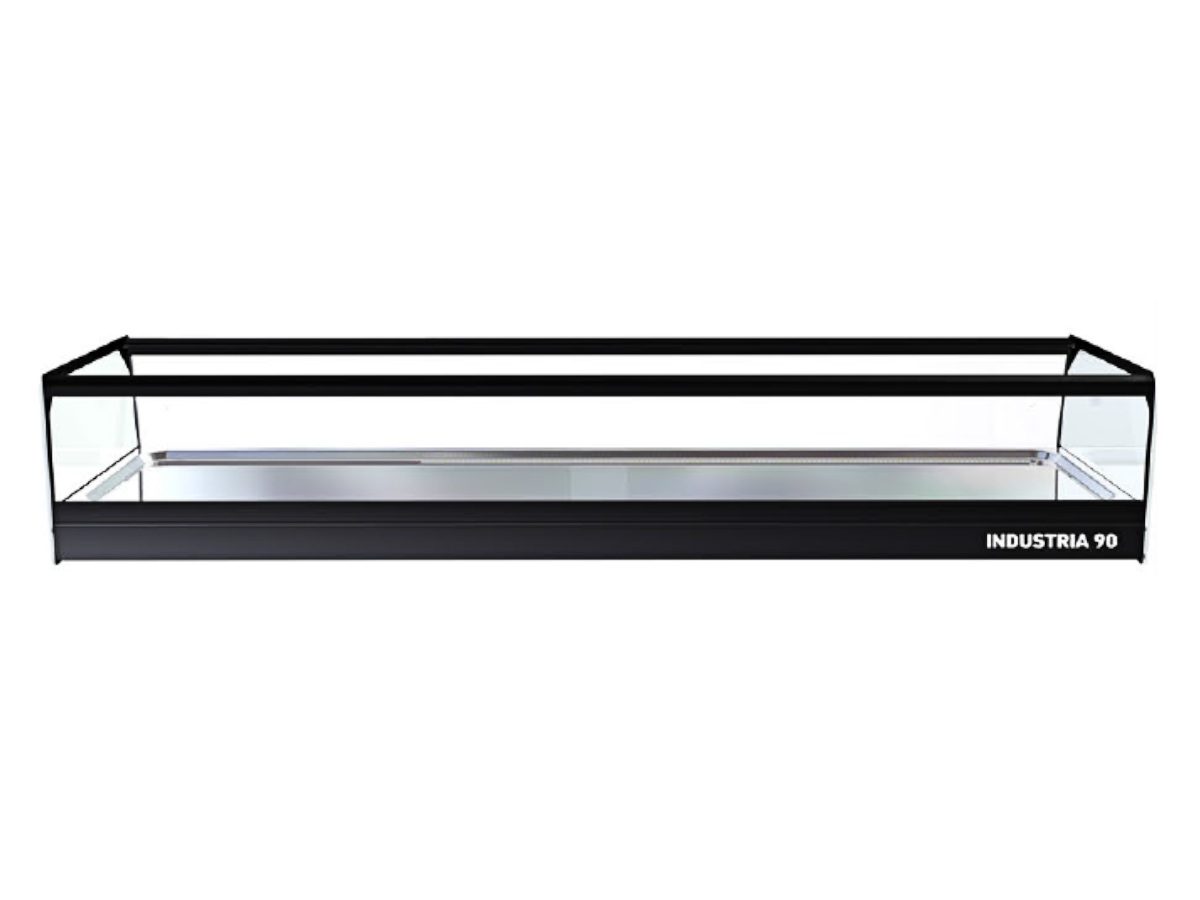 Vitrina CUB 8 NEUTRA CON CRISTAL PLANO de I90 con puertas correderas de alta resistencia. Acabado en aluminio anodizado negro.